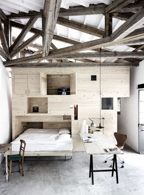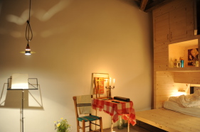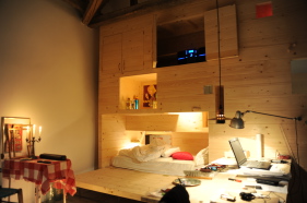 Chatollet, som vi kalder det store, fritstående træmøbel, rummer bad, køkken, arbejdsbord og 4 sovepladser.